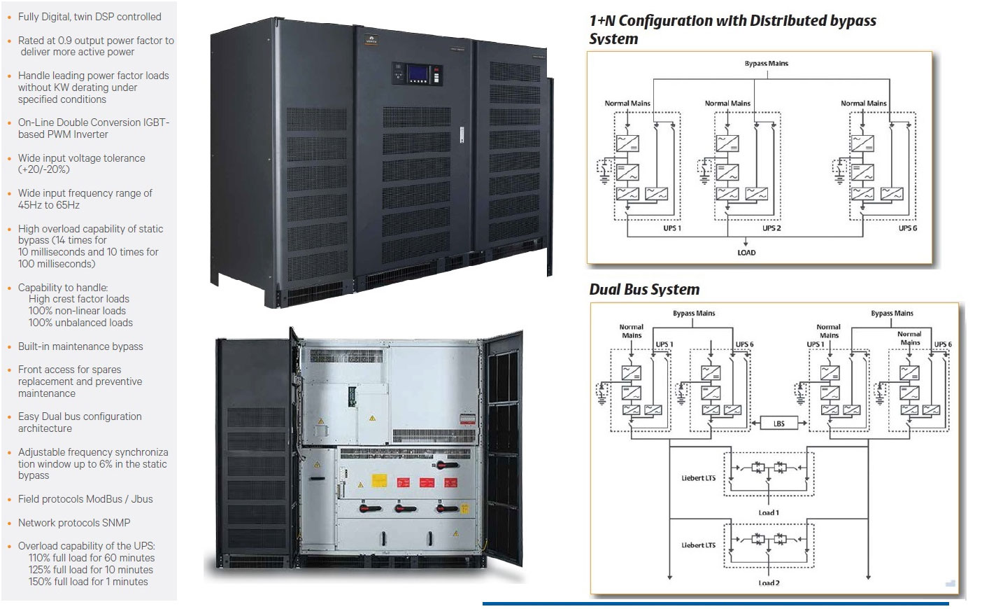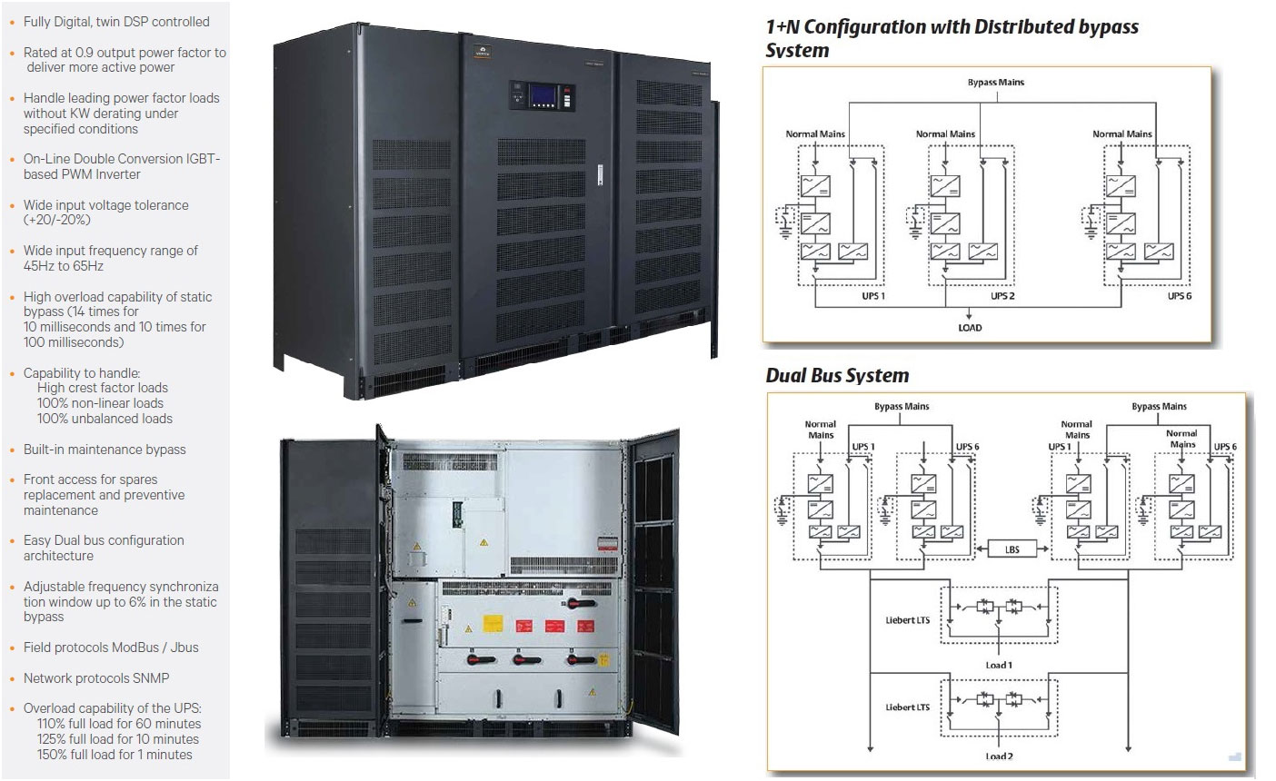 250kVA - 1000kVA, Transformer-free, High Efficiency, Scalable Online UPS.
