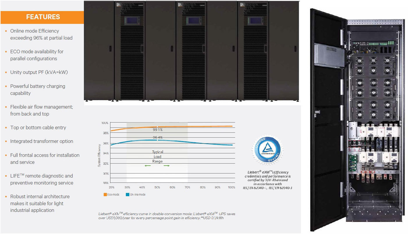 Small and medium sized businesses need UPS solutions that deliver lower first costs and ongoing operational savings, high reliability, and enable speed and flexibility in a dynamic IT environment. VertivLiebert® eXMis the most technologically advance product for our customer’s mission critical applications.